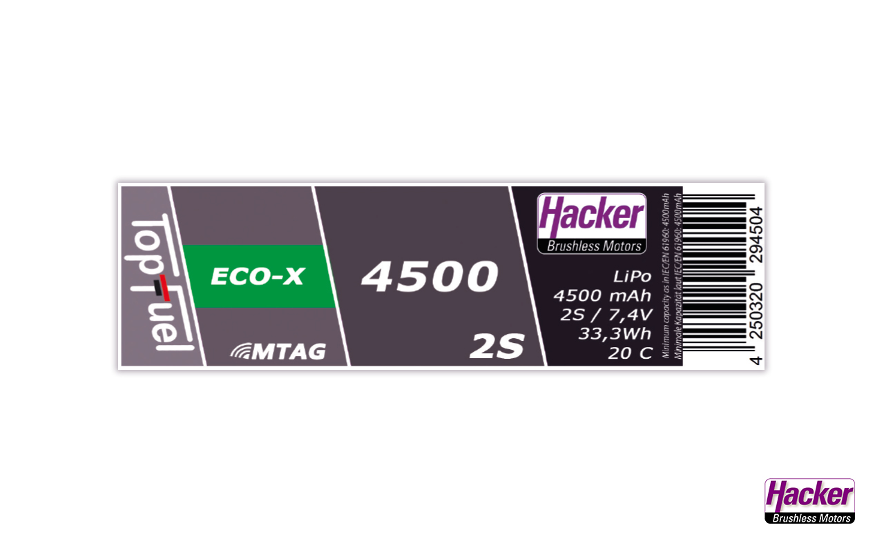 Battery data such as type, number of cells, capacity, C-rate or battery ID are stored on the passive MTAG chip. If desired* these values can be read out with an external NFC sensor such as the HACKER or JETI MTAG and be transferred to the transmitter telemetry system.