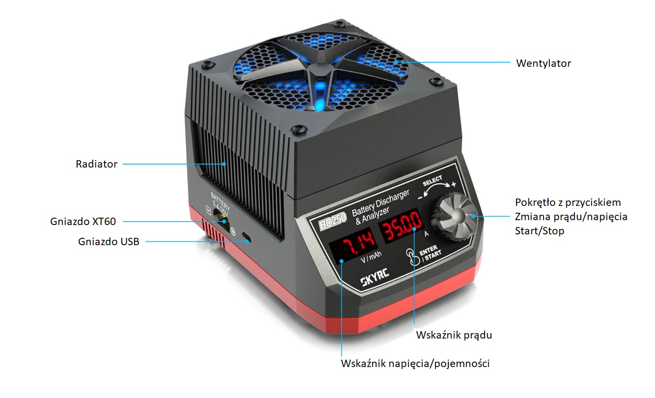 Upgraded from BD200, BD250 is not only a powerful discharging device but also a precise measurement tool for battery capacity. It takes the guesswork out of choosing the good-performance battery for your application. BD250 offers a maximum of 250 Watts/35 Amps to discharge your battery and will test virtually any battery type or size, any chemistry cells. It's stylish but small with a high-performance cooling system and uses MOSFETS from the well-known IXYS, to make sure it can discharge at 250 watts continuously.