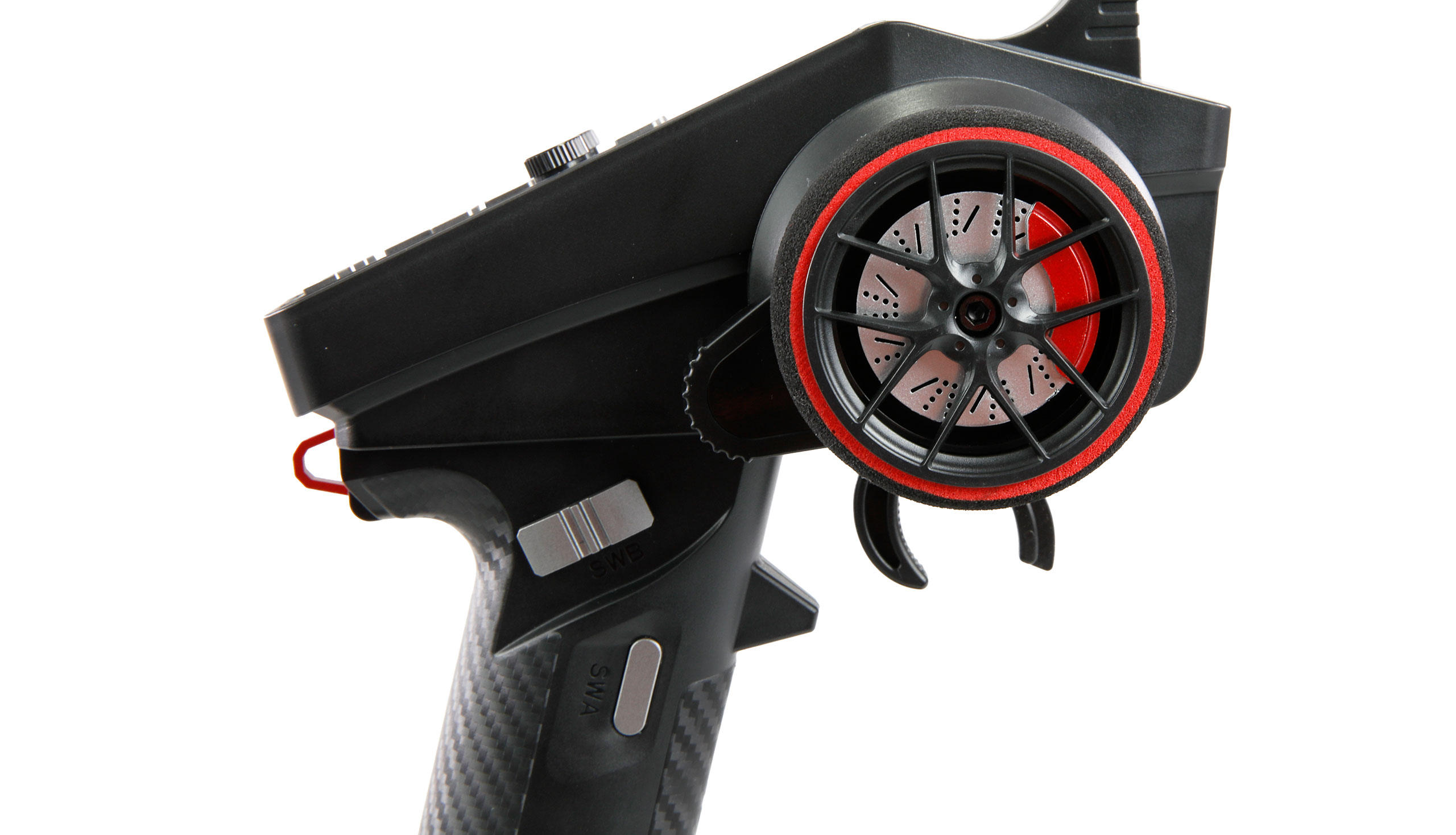 The control system offers the following controls: throttle, steering, a push button on the handle (SWB), a three-way switch above the handle (SWA) and two simple buttons on the top. Digital trim ensures that all settings are retained even when the remote control is turned off.