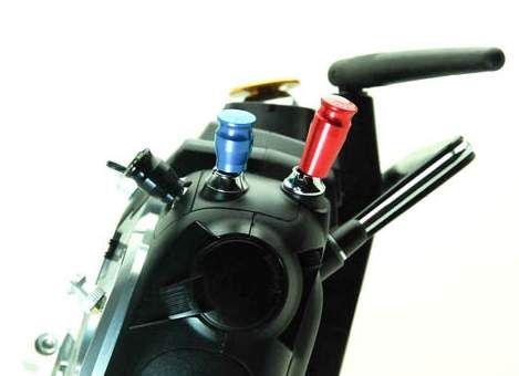 Practical aluminum caps to be applied on the two or three position switches present on the radio controls.