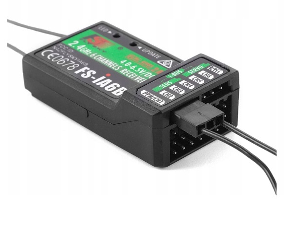This FlySky FS-iA6B 6ch Receiver works great with the FlySky FS-i6 Controller. This compact 6 channel receiver is great for any model using up to 6 channels and, with a range exceeding 500 meters, it can be considered to be full range for all but the most demanding of applications. The receiver has end-on connectors to enable a neat installation in tight spaces. Built in connectors allow you to use any of the optional FlySky telemetry sensors. Dual antennas give the FS-iA6B excellent reception and interference rejection capability. With easy binding, compact dimensions, optional telemetry and dual antennas!