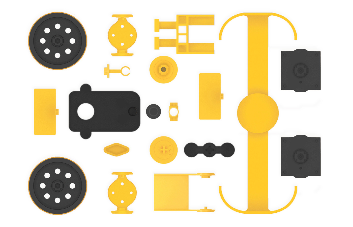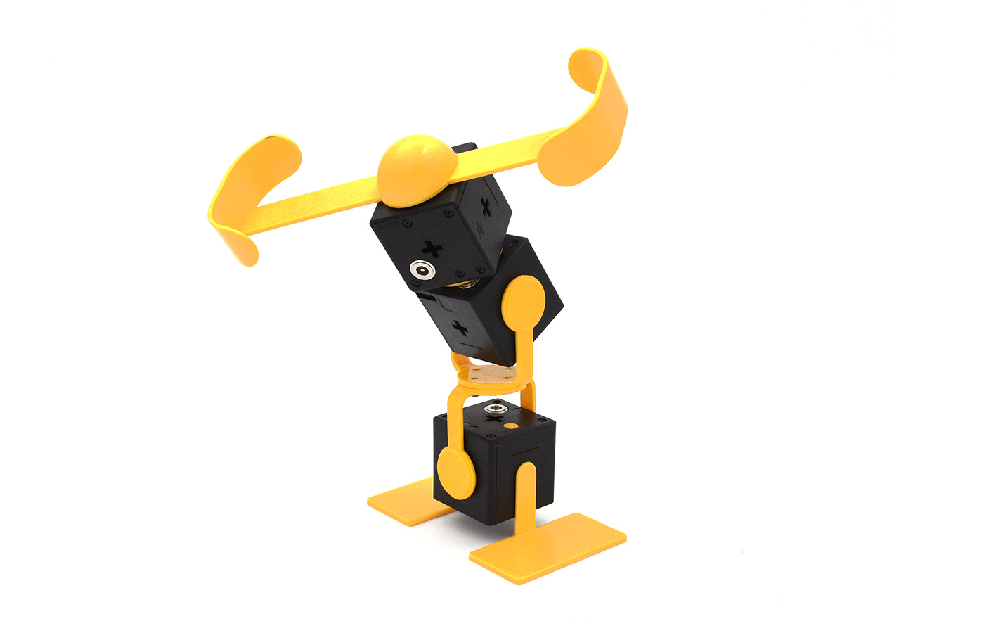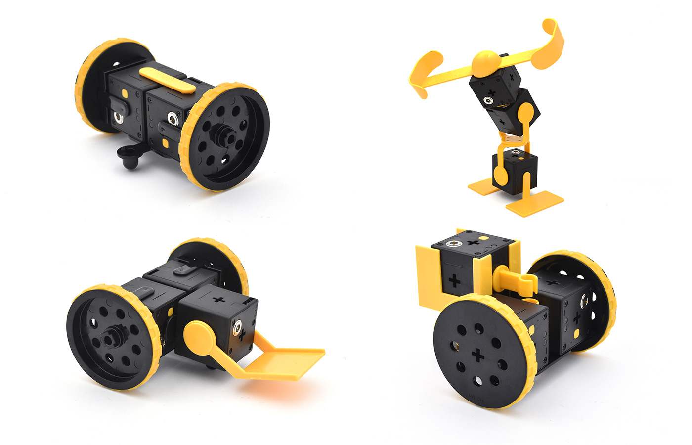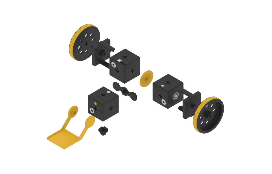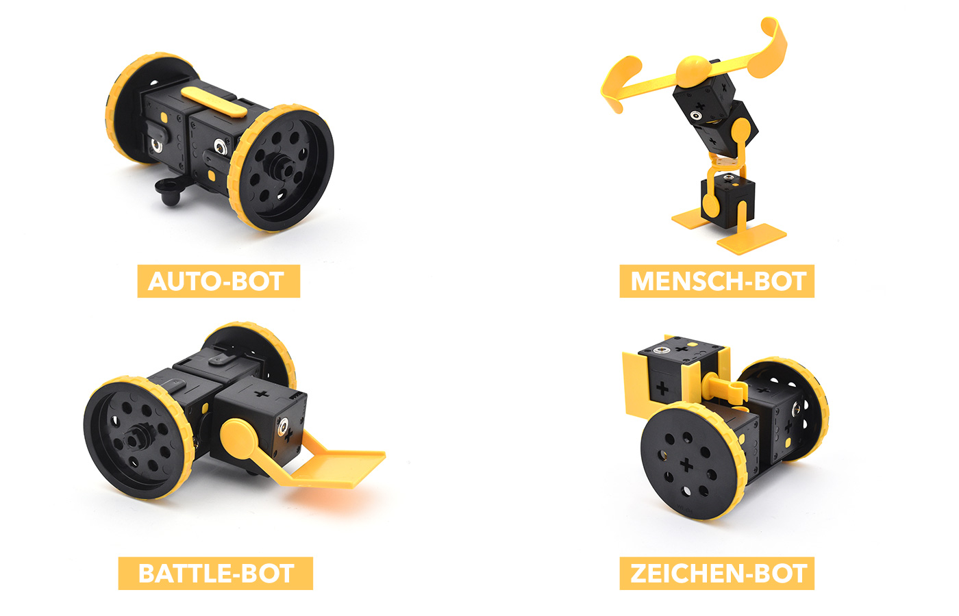 The set consists of three CUBEs (CUBE = functional unit) and the included connections. This results in a total of four completely different robot types - and thus a huge variety of possible actions and functions!