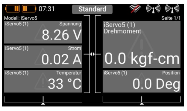 The latest generation of servos from PowerBox Systems! The iServo5 heralds the arrival on the market of the latest generation of servos! Based on an extremely robust gearbox with zero lost motion and BL motor from the MKS stable, the servo now features a new electronic control unit with high-performance processor. This electronic unit operates at 1000Hz instead of the usual 300Hz of conventional digital servos, and - above all - is compatible with the PowerBox P²-BUS. Right from the outset the P²-BUS was developed for just such tasks, and now the iServo5 exploits all its strengths. Up to 200 servos can be connected in parallel to the P²-BUS; all of them can be addressed, and all can deliver telemetry data to the transmitter. In normal modelling applications, with the usual complement of 15 - 25 servos, data for current, voltage, torque, temperature and transit angle for all servos can be transferred without appreciable delay to the transmitter, where they can be monitored with the help of alarm settings or the telemetry log. |